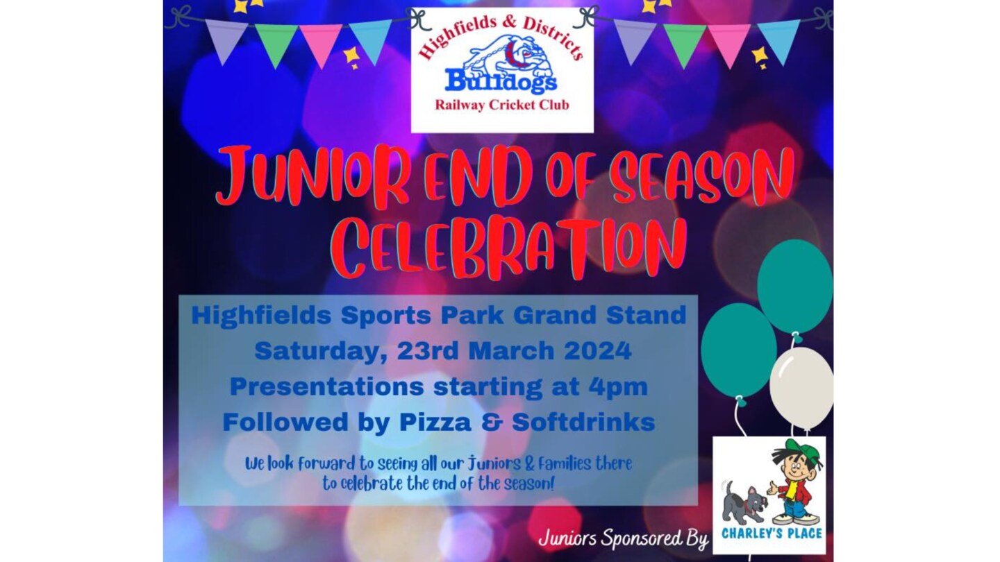 DOGGIES… OUR JUNIOR BREAK-UP is this Saturday, 23rd March 2024 at Highfields Sports Park Grand Stand at 4pm.